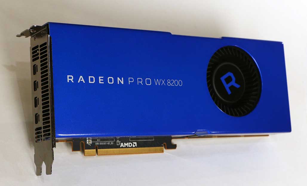 AMD has recently released a new high end professional GPU as part of their RadeonPro line. The RadeonPro WX8200 is based on the Vega architecture, with 3584 compute cores accessing 8GB of HBM2 memory at up to 512GB/sec. It is roughly equivalent hardware specs to their $400 Vega 56 gaming card, but with professional drivers tuned for optimized performance in a variety of high end 3D applications. AMD is marketing it as an option between the Quadro P4000 and P5000 from NVidia, priced at $999.