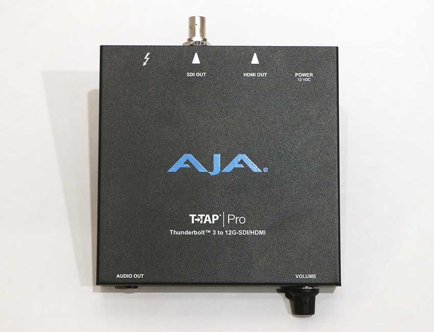 Enter the new T-TAP Pro. The original T-TAP was introduced in 2014 for $295 and offered HD-SDI and HDMI 1.3 output in a tiny Thunderbolt1 connected package. The new T-TAP Pro is a considerable step up from that, supporting 12G-SDI, and HDMI 2.0 with HDR simultaneously, and even 12RGB support for demanding color work, but also adding analog audio output, and a rotary volume control with visual meters. This necessitated a larger box, with a separate power supply, and a price tag of $795.