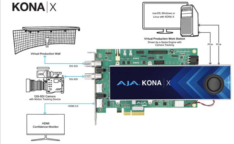 First off, AJA announced their newest PCIe I/O card, the KONA-X. At the surface level, the card is a straightforward option, sitting below the existing Kona-5 but far above the T-Tap Pro, with 12G SDI and HDMI 2.0 inputs and outputs, compatible with any of the tools that already support the long standing Kona line of products. What makes the card unique is its DMA support for lowering input to output latency, for faster turnaround of AR graphics and AI driven video overlays, or virtual production backgrounds, being generated on the fly by game engines.