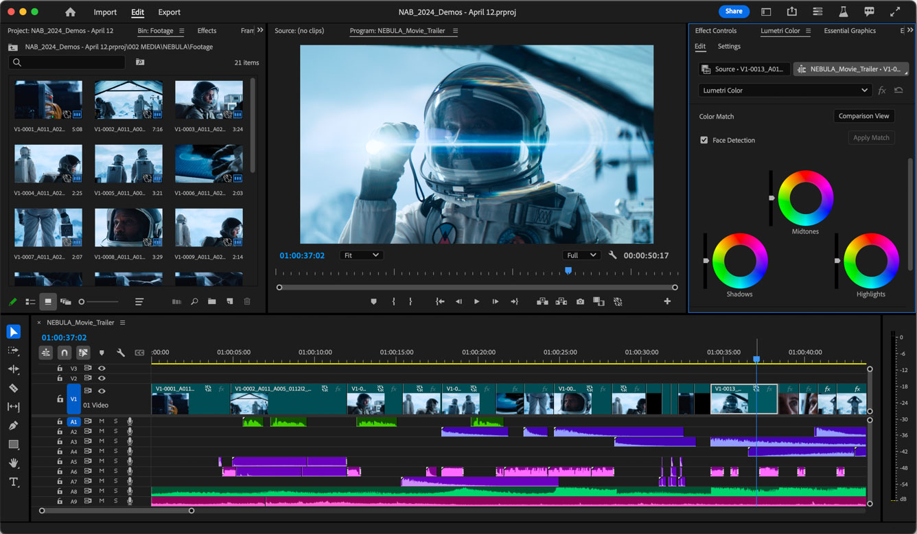 Adobe has made a number of software announcements for IBC, primarily focused on Premiere Pro and After Effects. The most visually obvious upcoming change in Premiere Pro is the new Spectrum UI, which offers higher contrasts at a wider variety of brightness levels. The text labels should be more readable, and ideally things will be easier to navigate.