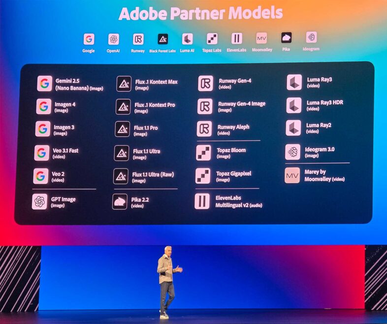 The Firefly Image Model now has its 5th version in beta, which support 4 MegaPixel images, and also supports editing existing images, similar to Google’s ‘Nano Banana’ image model, which is also now integrated into the Firefly ‘platform,’ as part of Adobe’s new partnership with Google.  These exist in Firefly alongside other models like ChatGPT, Flux, Runway, Topaz, and Eleven Labs, among others in a growing list.  The image models available in Firefly are also directly accessible inside of Photoshop, via prompts, content aware fill, and even (in the case of Topaz Labs) in the scaling tools, for AI upres.