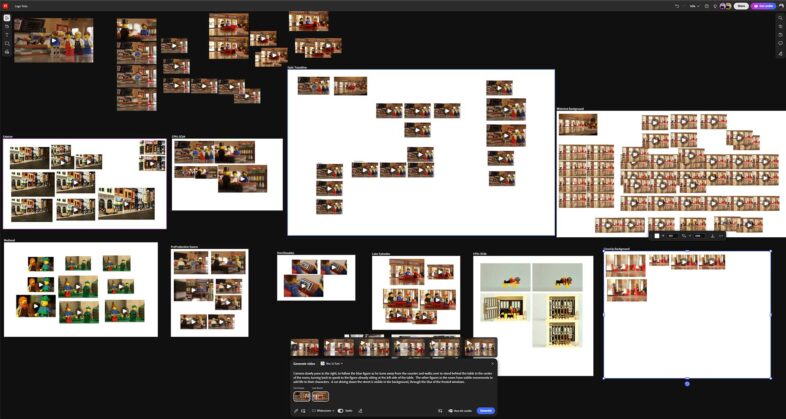 I did not initially embrace the ideation boards in Firefly until I saw them demonstrated during workflow presentations at MAX, and that is what really got me started in exploring the application more fully.  My previous tests had been in the Image-to-Video part of the UI, which does offer more options, but is very clunky to use.  I would call that ‘testing’ Firefly, while once I jumped into boards, I was ‘using’ Firefly.  Boards becomes the file system for your cloud assets, because AI generation results in lots of small media files, many of which look very similar. (They should probably implement a take numbering system to make it easier to track.)  It allows you to visually organize those images and clips, and quickly compare them, as well as directly further the generative process.  Generate an image you like, converting it to video is only a click away.  Like that video, modifying it is only a click away as well, but that option still needs work.