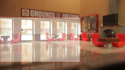 The other new feature Adobe recently added to Firefly is Topaz Labs’ Astra generative AI upscale for video.  Veo3 is currently limited to 1280x720p24 output (in Firefly Boards), but my Grounds of Freedom show is shot and animated at 5K, for 1080p FHD delivery.  I just accepted the 720p limitation for my initial tests and work, and alleviated the issue a bit by only animating the parts of the frame that needed it. That allowed me to maximize the use of the 1280×720 image where I needed it (generating background motion content outside the windows and in the reflections on the floor).  The other option now in Firefly, is to up-res the result from Veo3 (or other models), with Topaz Labs Astra, before downloading it into your edit.  Topaz’s tools are well regarded and probably the best option for that workflow at the moment.  Firefly now allows users to up-res videos to 1080p or UHD using Topaz, offering “Precise” or “Creative” generative up-res, with two levels to each.  I tried all four permutations on this opening shot for my series.  Obviously this is something that is best viewed on a high quality monitor if you want to see the difference, but it is visible.
